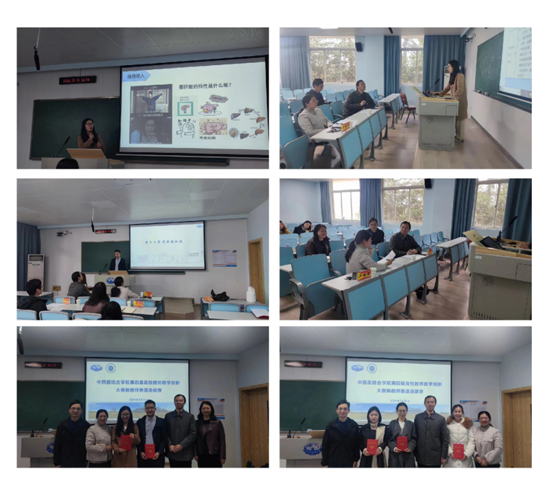 本次大赛共有20名年轻教师参赛,他们以饱满的热情,呈现了一堂堂精心设计的课程。同时,本次比赛特邀了护理学院严姝霞主任和药学院吴亮老师,为参赛教师提供了宝贵的建议和专业的辅导。两位专家结合自身的参赛经验,针对课堂教学目标的设定、教学内容的优化、板书与PPT设计的创新,以及中西医结合理念和课程思政的有效融合等多方面充分考察并进行了深入分析点评。经过评审专家认真审议和讨论,最终程媛老师、王礼宁老师获得本次学院选拔大赛的一等奖,韩暄、宋宇尘、沃冠群老师获得本次大赛的二等奖。