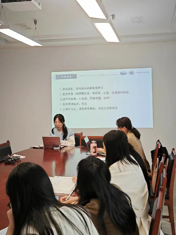 随后,中西医结合内科教研室的裴可老师介绍了自己的教学设计和“以典型病案为教学载体”的教学方法。她以“循环系统疾病”为例,强调了教学设计要图文并茂、突出重点和难点;而典型病案要简明扼要,注重中西医结合,紧扣课本知识点,确保教学内容前后呼应、有头有尾。