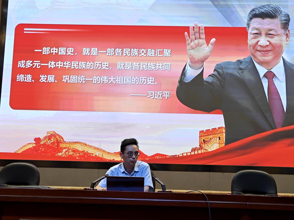 6月4日下午,太阳成集团122ccvip副经理陶伟伟以“铸牢中华民族共同体意识”为题目,向2023级同学讲授了课程。