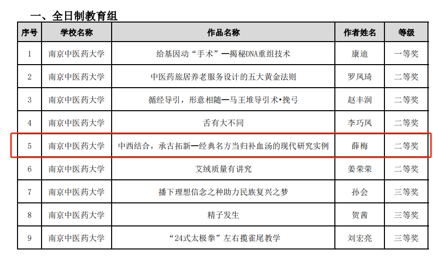 近日,江苏省高等学校教育信息化研究会公示了2024年江苏省高校微课教学比赛获奖名单,我院薛梅老师的教学微课作品《中西结合,承古拓新——经典名方当归补血汤的现代研究实例》荣获全日制组二等奖。