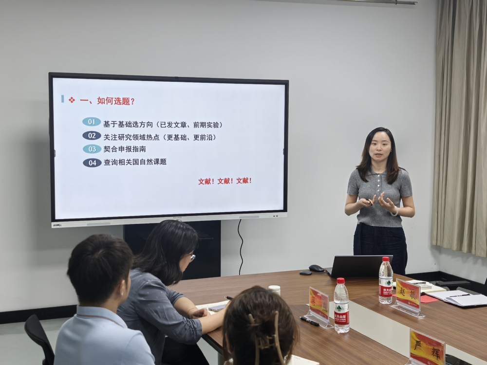 最后,蒋燕做总结发言。她强调参与申报国家自然科学基金对高校教师的职业发展、学科建设以及学院高质量发展建设至关重要,鼓励大家思想上要高度重视,调整心态,乐观面对挑战,在行动上要勤于思考,多加交流,夯实科研基础。