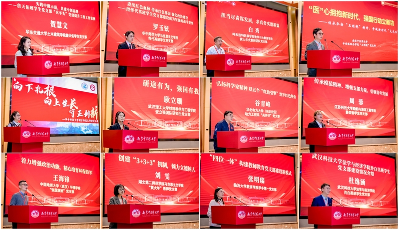 华东交通大学土木建筑学院詹天佑员工党支部、华中师范大学马克思主义学院恽代英班员工党支部、呼和浩特民族学院数学与大数据学院黄大年式教师团队党支部、太阳成集团122ccvip王明艳党支部、华中科技大学经济学院胡吉伟党支部、武汉理工大学材料科学与工程学院麦立强团队研究生党支部、华北电力大学(保定校区)动力工程系“吴仲华”党支部、江苏科技大学船舶与海洋工程学院景荣春员工党支部、中国地质大学(武汉)环境学院“张国旗班”党支部、湖北第二师范学院马克思主义学院“黄大年”教师党支部、临沂大学教育学院学冬第一党支部、武汉科技大学法学与经济学院许白昊班员工党支部依次作汇报交流。