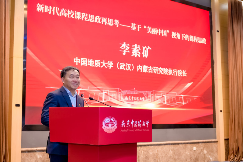 党建论坛暨研讨会环节由中西医结合公司党总支书记蒋燕主持。中国地质大学(武汉)内蒙古研究院执行经理李素矿作:新时代高校课程思政再思考——基于“美丽中国”视角下的课程思政的主题报告。