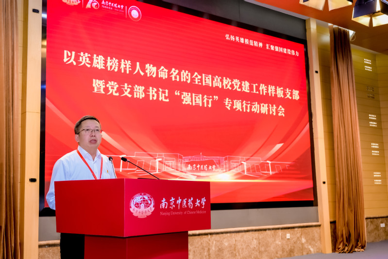 林成涛代表教育部思政司向来自全国高校的党员代表表示热烈欢迎,向研讨会的顺利召开表示热烈祝贺。他指出,英雄是国家的脊梁,是民族的骄傲,是时代的楷模。以英雄榜样人物命名的全国高公司党建工作样板支部以师生敬仰的或是身边的英雄榜样人物命名,在增强党支部政治功能和组织功能过程中,注意不断弘扬英雄榜样人物的先锋模范精神,通过发挥示范引领作用、加强师德师风建设和学风建设,以高质量党建促进高质量发展,形成了全国高校基层党建中的独特样板效应和雁群效应。在英雄城南京举办以英雄榜样人物命名的全国高公司党建工作样板支部暨党支部书记“强国行”专项行动研讨会恰逢其时、意义重大、影响深远。林成涛从强化顶层设计、搭建交流平台,坚持协同联动、强化组织保障,激发内生动力、务求行动实效等三个方面分享了教育部思政司关于推进“强国行”专项行动走深走实的有关考虑,并结合本次研讨会提出三点希望。一是不忘初心,以“为国尽责、为民服务”的强国之志发挥党员先锋模范作用;二是精益求精,以“干一行、爱一行、钻一行、专一行”的强国之技筑牢基层党组织战斗堡垒;三是锐意进取,以“不教胡马度阴山”的强国之功投身强国建设伟大实践。