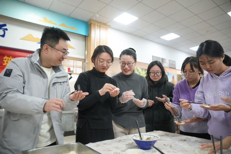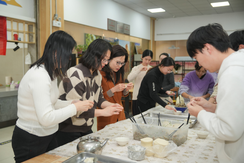 随后大家开始齐心协力包饺子师生围在长桌旁,交流各地饺子制作技巧,传统褶花与创意包法齐现,各种花样层出不穷。各民族员工借此机会分享家乡节庆习俗与饮食文化,让现场师生感受多民族文化的魅力与交融。