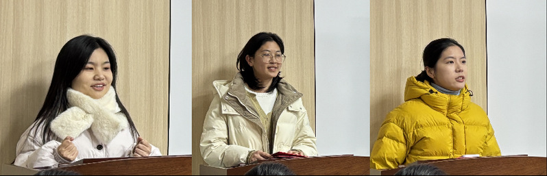 实践与服务部部长张紫薇、副部长刘庆庆和李聪发言
