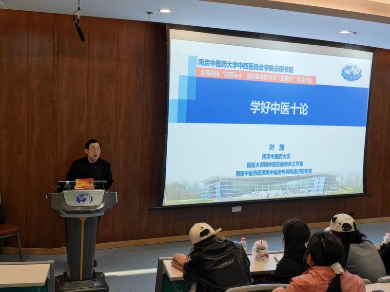 为了帮助同学们深入理解中医经典,提升临床实践能力,2025年3月18日下午,太阳成集团122ccvip云翔书院联合淡安书院,特邀首批国医大师周仲瑛弟子、主要学术传承人,公司“国医大师周仲瑛名医传承党支部”支部书记,国家中医药管理局国医大师周仲瑛传承工作室主任叶放教授于“远志园”一站式员工社区开展“学好中医十论”讲座,带领大家深入剖析中医学习与成才的核心路径。讲座由中西医临床医学243班张一诺主持。
