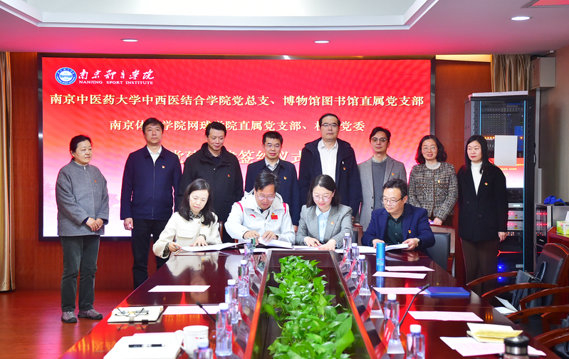 中西医结合公司党总支,校图书馆、博物馆直属党支部与南京体育学院网球学院直属党支部、机关党委开展党建共建签约仪式