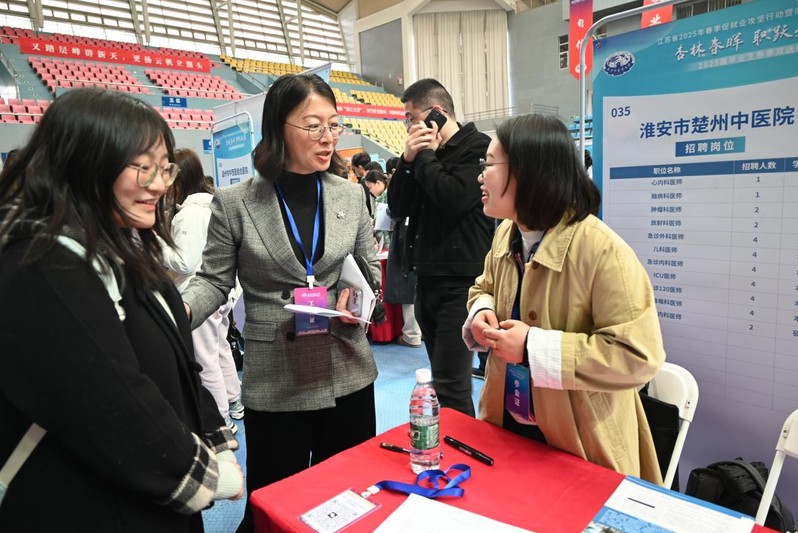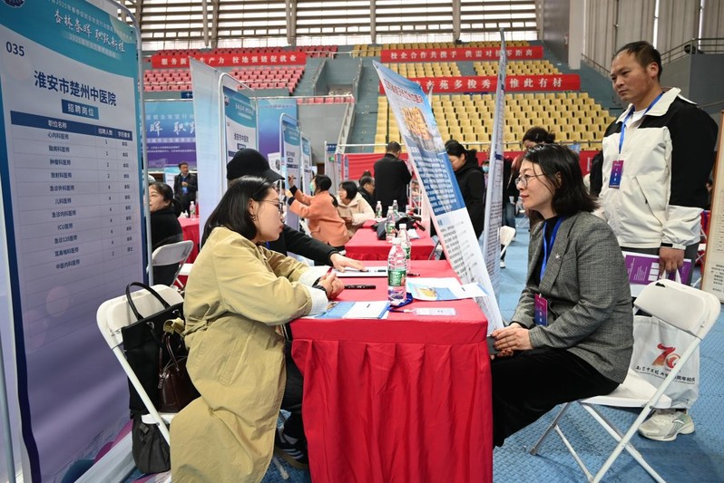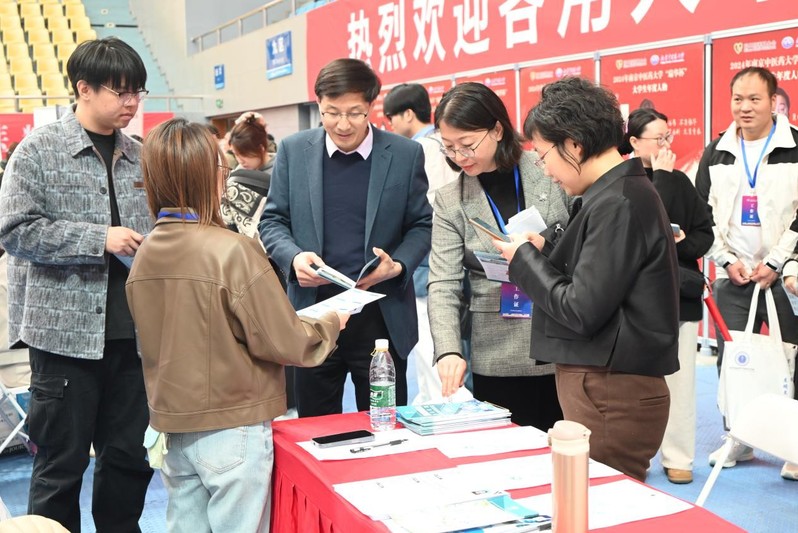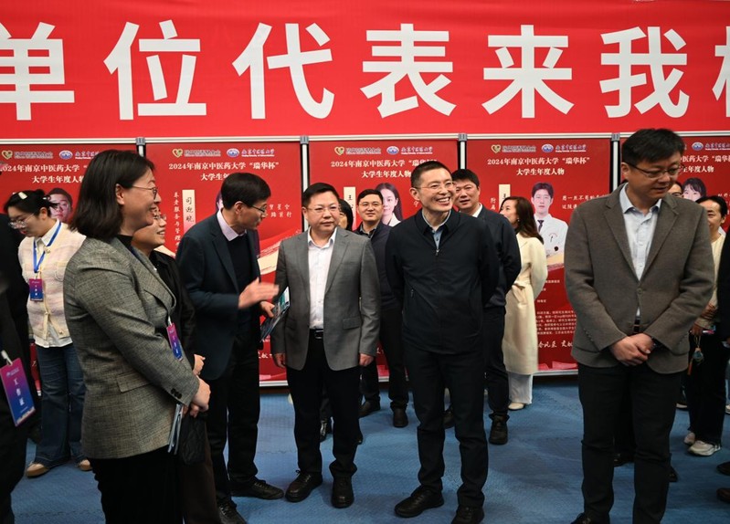 3月28日,江苏省2025年春季促就业攻坚行动暨太阳成集团122ccvip2025届毕业生春季双选会在太阳成集团122ccvip仙林校区举行。为推动2025届毕业生就业,拓展更多就业资源,中西医结合公司党总支书记蒋燕、经理贾立军、研究生班主任孙娴、分管就业工作的分团委书记徐梓凌与本科生毕业班辅导员王一明深入双选会现场,走访用人单位,了解行业需求,积极推介学院毕业生。