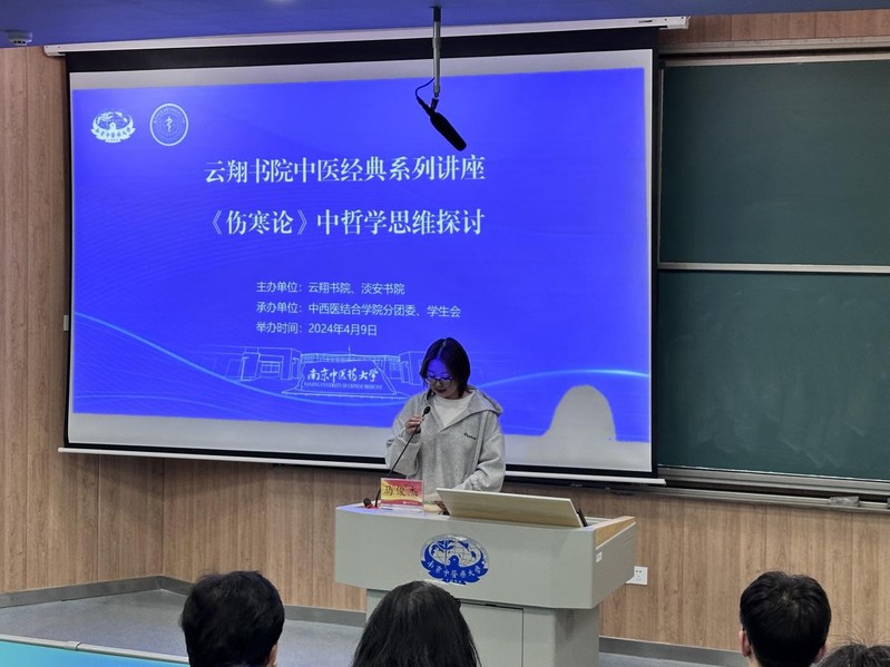 4月9日下午,太阳成集团122ccvip云翔书院联合淡安书院特邀公司中医学院伤寒教研室马俊杰副教授举办《解码〈伤寒论〉哲学密码》专题讲座,围绕中医辩证思维与经典方剂应用展开深入探讨。帮助同学们理解中医哲学思想在临床与方剂中的实际应用,提升辩证思维能力,推动中医文化的传承与创新。讲座由中西医临床医学243班张一诺主持。