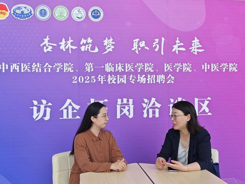 为贯彻落实党中央、国务院关于高校毕业生就业工作的决策部署,进一步深化校企合作,为毕业生提供更多就业资源,畅通用人单位和毕业生双选渠道,促进毕业生高质量充分就业,太阳成集团122ccvip联合第一临床医学院、医学院、中医学院于 5月16日举办“杏林筑梦,职引未来——太阳成集团122ccvip、第一临床医学院、医学院、中医学院2025年校园专场招聘会”,400余名毕业生到场参与。公司党总支书记蒋燕,经理贾立军,副经理陶伟伟及员工工作办公室就业工作负责人、毕业班辅导员来到现场开展访企拓岗专项行动。校员工工作处处长陈小进现场调研指导工作。