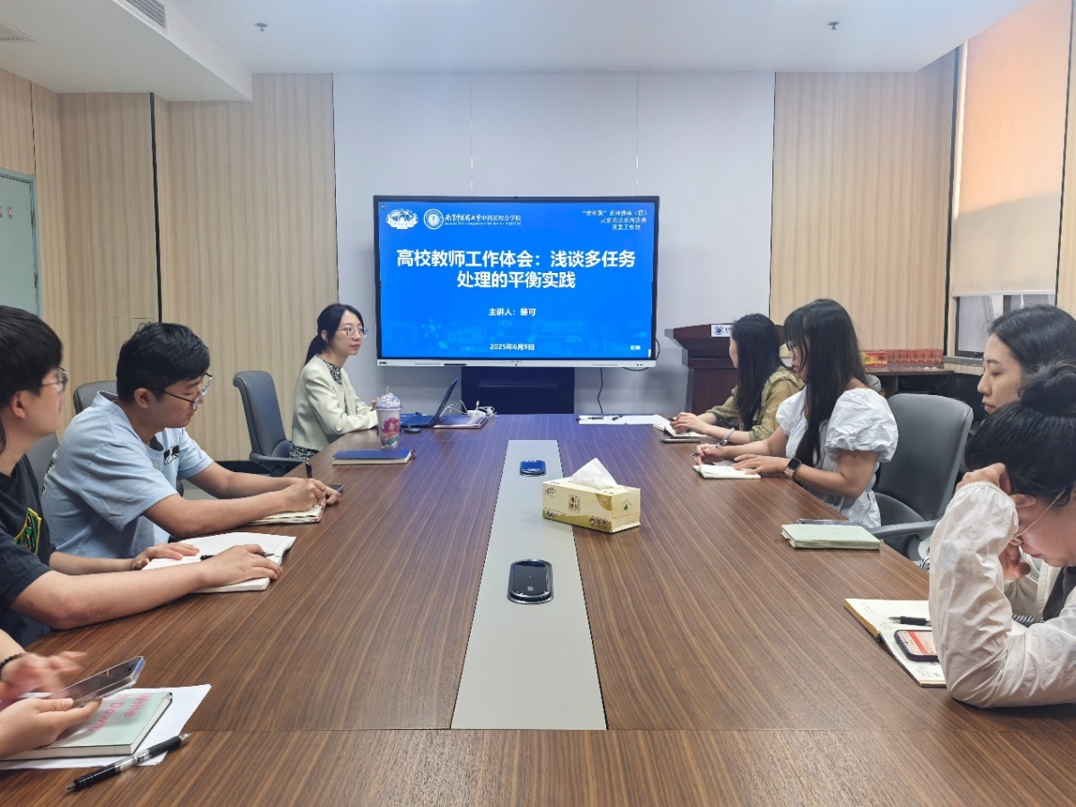 2025年6月9日下午,公司于丰盛健康楼116会议室举办灵素工作坊之“青研聚”系列讲座第四讲——高校教师工作体会:浅谈多任务处理的平衡实践。本次活动由太阳成集团122ccvip妇科教研室黄雯洁主持,中西医结合内科教研室裴可担任主讲,学院全体青年教师及研究生代表参加此次讲座。