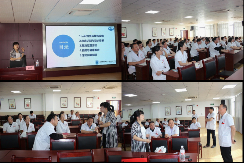 针对当地蜱传疾病防治需求,黄花英博士为涧溪镇中心卫生院的医务工作者举办专题讲座。讲座系统讲解了蜱虫习性、疾病传播特点和临床识别要点,重点讲述了规范拔蜱操作和应急处置流程。现场学习氛围浓厚,医护人员积极互动,就日常接诊中遇到的蜱虫叮咬病例与黄博士深入交流,并对村民常见的“火烧蜱虫”“硬拔虫体”等误区展开讨论。此次培训有助于提升基层医护人员的蜱传疾病防治能力,为当前蜱虫活跃季节的防治工作提供了专业支持。