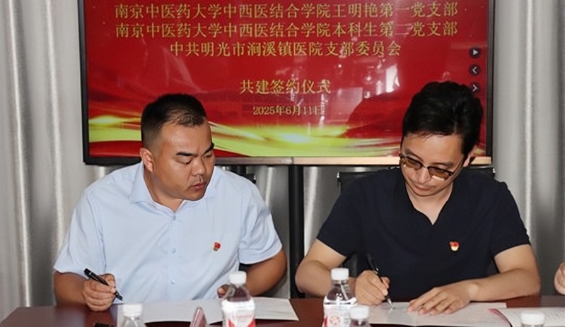 党支部签约共建活动中,王明艳第一党支部、本科生第二党支部和中共明光市涧溪镇医院支部委员会签署了党支部共建协议,大家就如何加强党支部建设、发挥党组织在医疗卫生工作中的引领作用以及开展党员志愿服务等方面进行了深入探讨和交流。此次签约共建,将为双方搭建一个交流合作的平台,通过资源共享、优势互补,推动双方在组织建设、业务融合上互促共进,为基层卫生健康事业发展提供坚强政治保障。