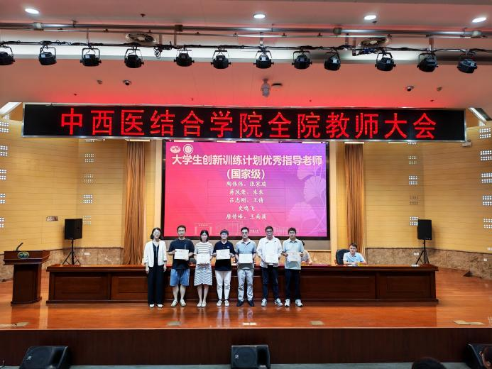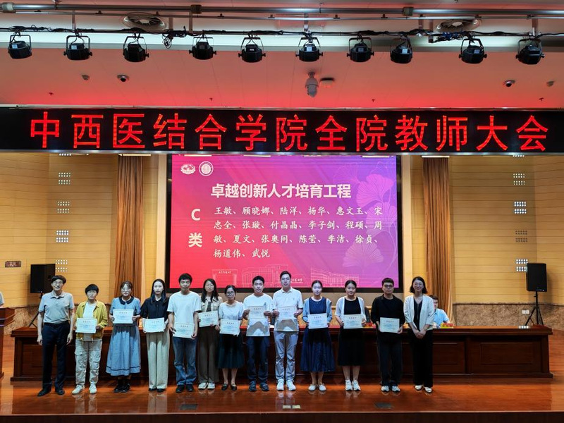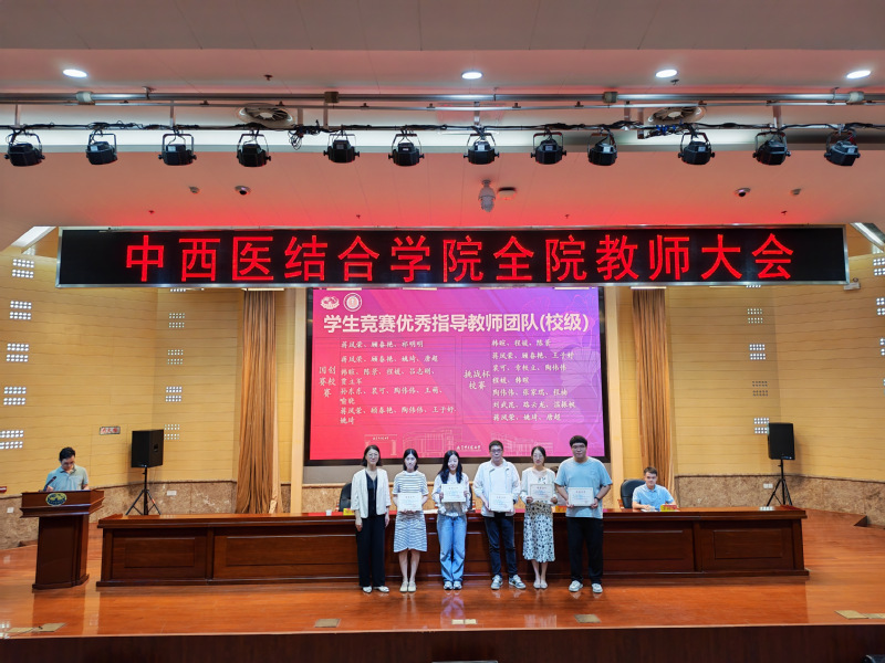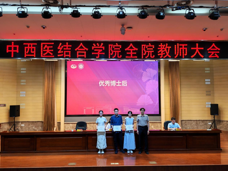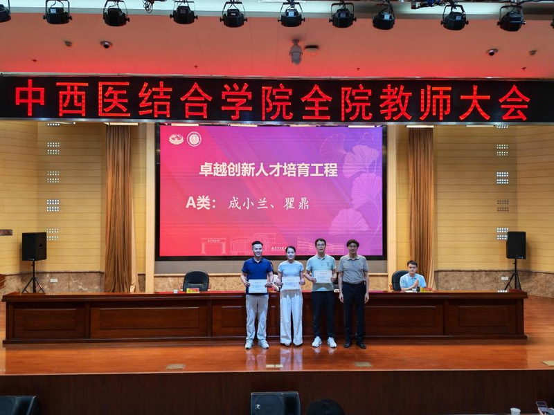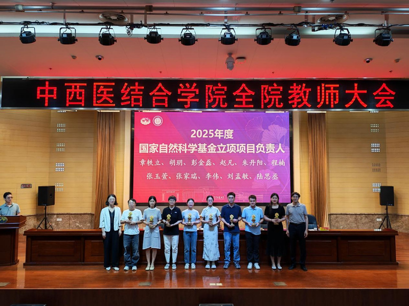 会议首先对学院各类优秀教师和团队进行了表彰。荣获中西医结合学科卓越创新人才培育工程A类、B类、C类项目负责人,2025年度国家自然科学基金立项项目负责人,员工竞赛优秀指导教师团队,老员工创新训练计划优秀指导老师以及优秀博士后等依次上台接受荣誉证书。学院领导蒋燕书记、贾立军经理为获奖教师颁奖。
