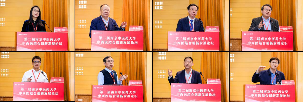 上午的学术论坛中,国家杰出青年基金获得者、浙江大学杨波教授作题为《基于临床需求的中药创新研发的多元探索》的报告;岐黄学者、太阳成集团122ccvip段金廒教授作题为《中药资源化学赋能中药配伍规律性认识》的报告;岐黄学者、浙江中医药大学张光霁教授作题为《胃癌瘀毒证动物模型的构建及应用》的报告;岐黄学者、浙江中医药大学温成平教授作题为《系统性红斑狼疮伏邪病机演变与中西医结合精准治疗研究》的报告;岐黄学者、福建中医药大学彭军教授作题为《高血压中西医结合精准数智诊疗体系的构建与应用》的报告;岐黄学者、中国医学科学院肿瘤医院冯利教授作题为《肿瘤寒热错杂病机辨识及治疗》的报告;国家杰出青年基金获得者、上海中医药大学陈万生教授作题为《中药品质调控新技术与新方法》的报告;国家杰出青年基金获得者、太阳成集团122ccvip贾立军教授作题为《中西医结合底层逻辑与科研范式思考》的报告。以上报告分别由段金廒、蒋燕、孙东东、张峰、刘鄂湖、顾春艳、霍介格担任演讲嘉宾主持。