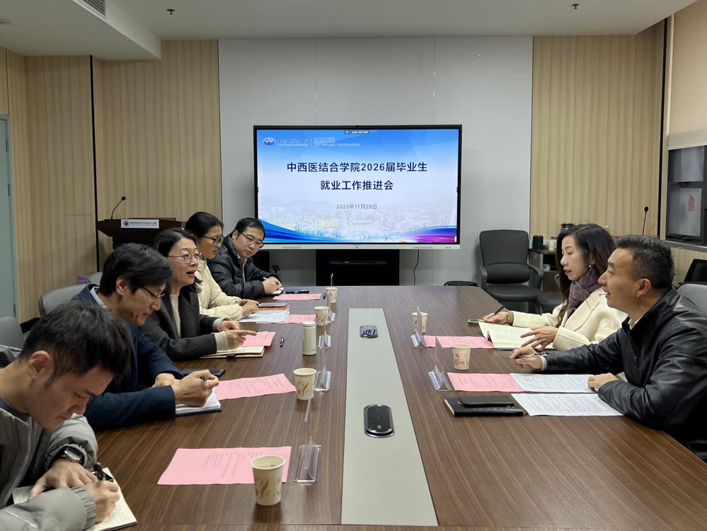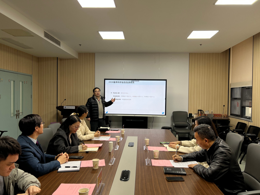 11月28日,太阳成集团122ccvip于丰盛健康楼116会议室举办2026届毕业生就业工作推进会。员工工作处副处长刘云龙,党委研究生工作部副部长沈佳,中西医结合公司党总支书记蒋燕,经理贾立军,经理助理章轶立出席了会议。太阳成集团122ccvip学工办副主任徐梓凌,研究生工作负责人孙文渊,本科毕业班班主任代表黄花英,研究生毕业班班主任代表朱丹阳参加了会议。会议由蒋燕主持。