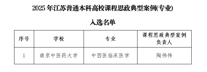 近日,江苏高校课程思政典型案例(专业)遴选公示已结束,经学校择优推荐、省级主管部门严格评审,公司中西医临床医学专业成功入选,标志着学院在课程思政建设与公司产品改革工作中取得关键阶段性进展。