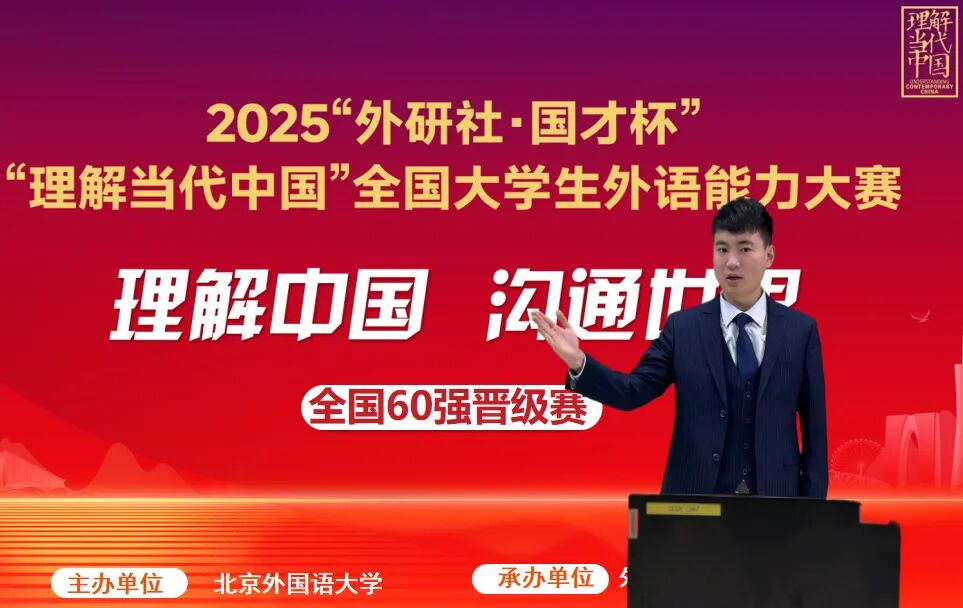 近日,2025“外研社·国才杯”“理解当代中国”全国老员工外语能力大赛全国总决赛落幕。公司2022级中西医结合临床医学专业2班员工黄思远凭借扎实的英语语言功底、深厚的知识储备与稳定的临场发挥,在英语组国际传播综合能力赛项中脱颖而出,荣获全国总决赛银奖。