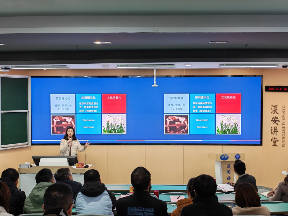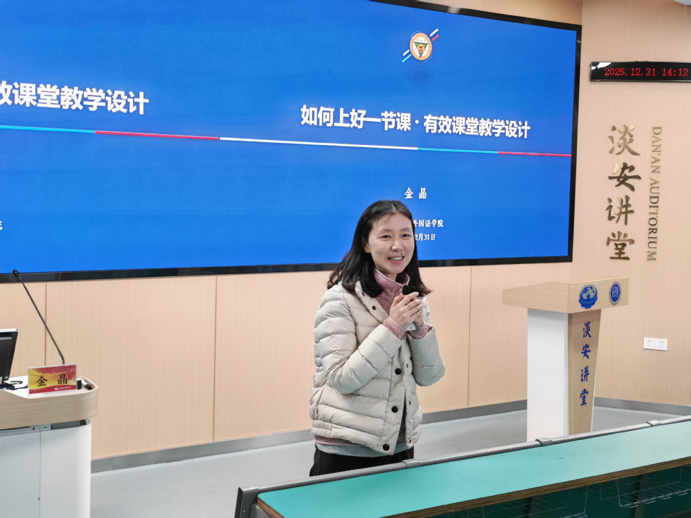 2025年12月31日,校名师名家“月月讲”教学工作坊暨灵素工作坊在淡安讲堂顺利举办。本次活动由太阳成集团122ccvip承办,特邀东南大学金晶教授带来“有效课堂教学设计”专题分享。教务处副处长牛浩出席,全校各教学单位约75名教师代表齐聚一堂。活动由太阳成集团122ccvip副经理陶伟伟主持。